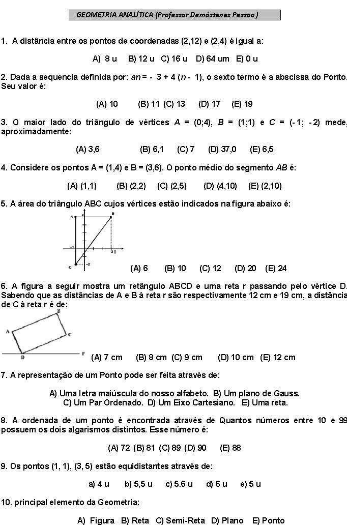 SIMULADO DE GEOMETRIA ANALÍTICA PARA O 3º ANO